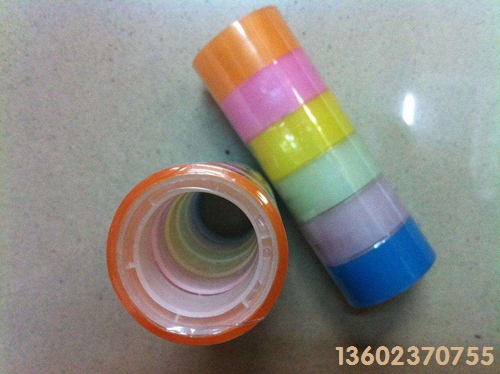 彩色文具胶带由Bopp薄膜涂上各种色彩的压敏胶制作而成,具有高粘性,透明度好,贴合快,韧性好,无毒环保、色彩艳丽等特点,是学生们都喜欢用的一种文具,上海胶带厂家批发。
