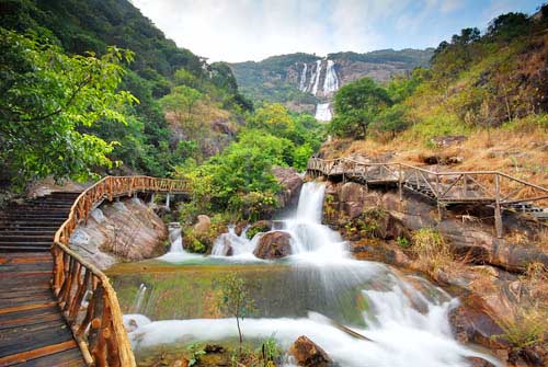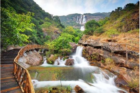 白水寨的初夏很美,到处到是水与山,在这种水山相映的地方中,明安开展了一个美食大会和接龙游戏,团体活动结束后就是员工的自由活动时间,小明看到很多同事都像就想家人一样游玩拍照。